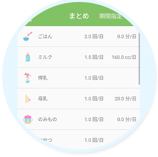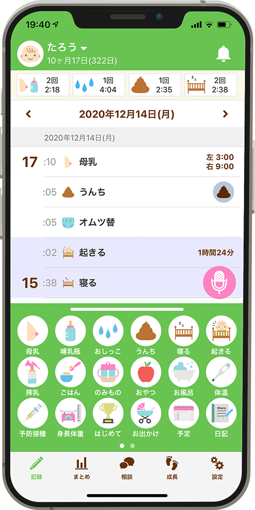 0歳~6歳頃までの子どもの生活をアイコンタップで簡単に登録。